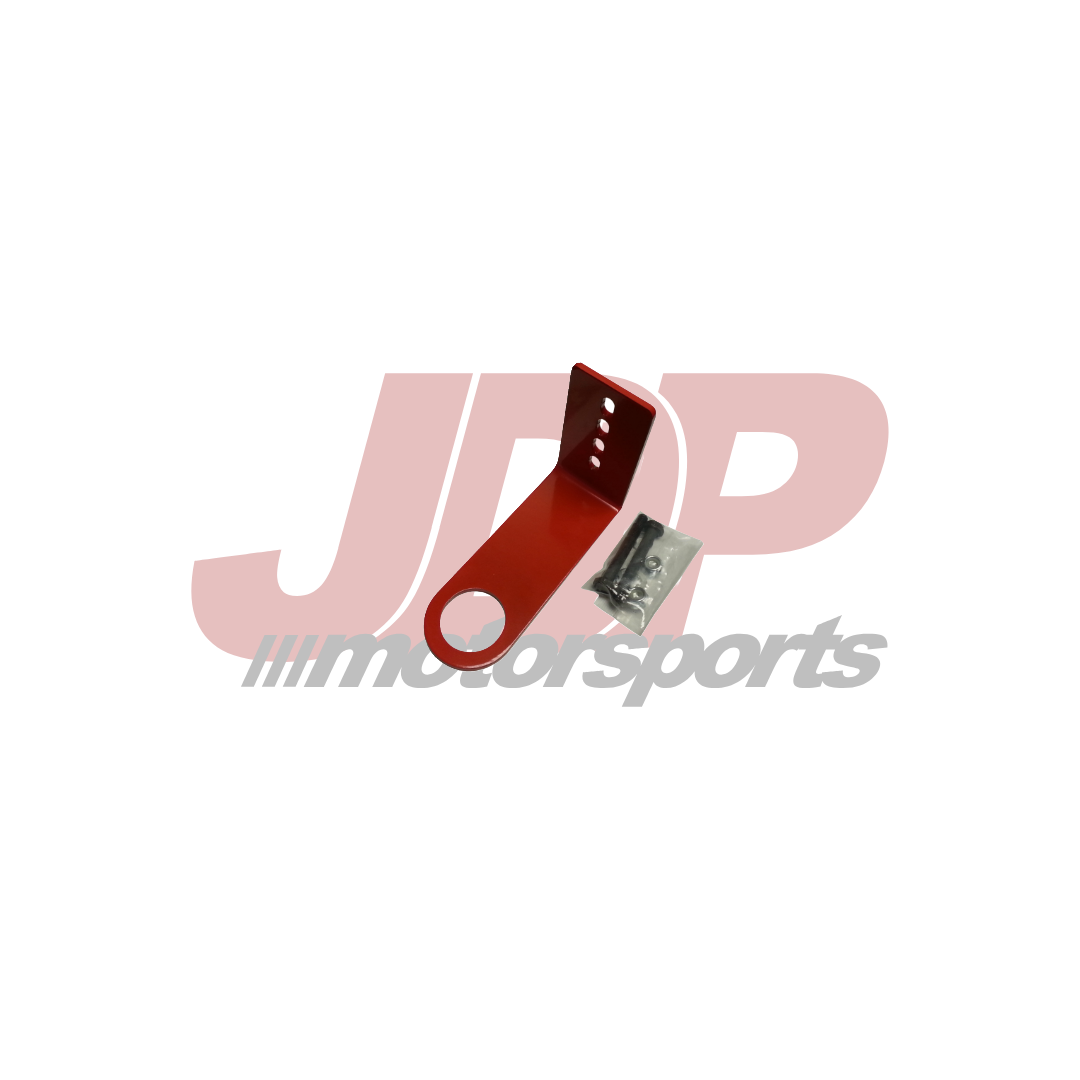 JDP Motorsports front tow hook for the 2010-2015 Camaro SS and 2012-2015 Camaro ZL1 includes a hot rolled steel laser cut 3/16" front tow hook powder coated red or black with the required mounting hardware and tow sticker. The 2" eyelet meets most sanctioning body rules.